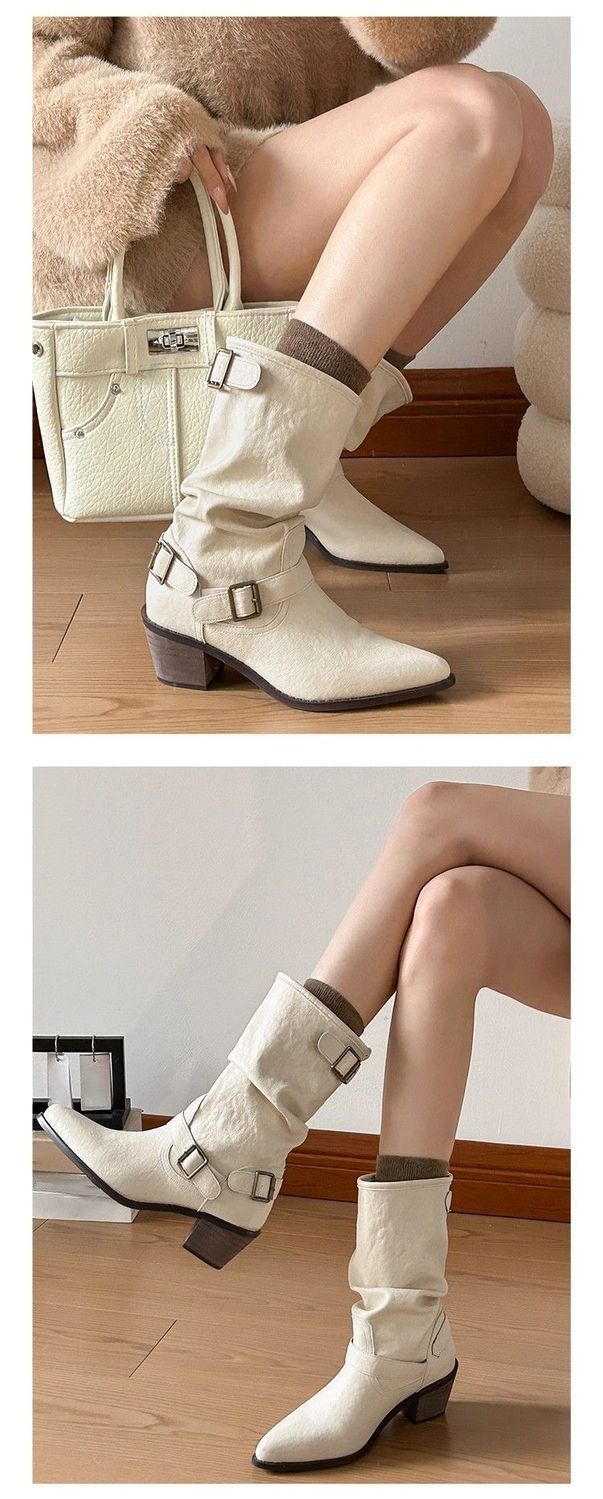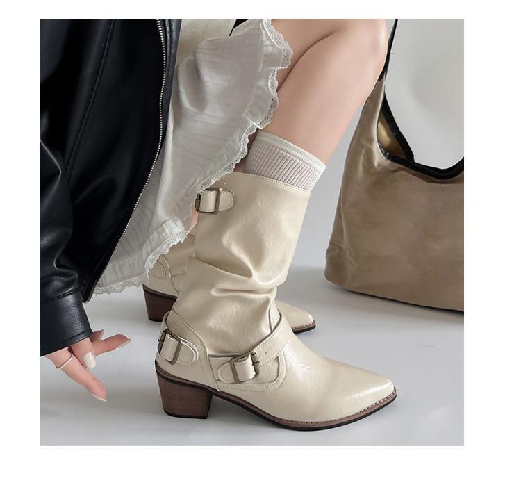 Fashion All-match Comfort And Casual Pointed Toe Chunky Heel Women's Boots
