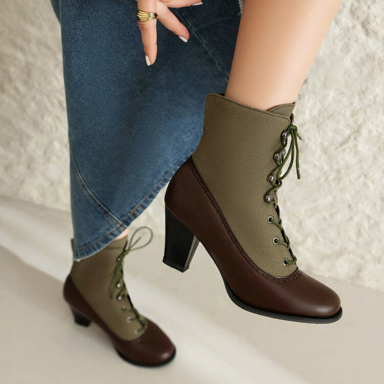 Retro British Style Cone-shaped Heel Martin Boots